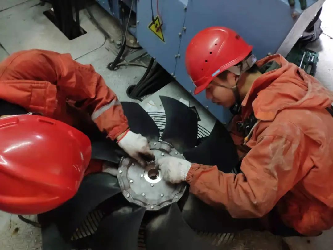 臨近春節(jié),運(yùn)行人員林正杰帶領(lǐng)班組成員例行巡檢,這時(shí)監(jiān)控主機(jī)報(bào)警顯示9號(hào)風(fēng)機(jī)液壓油位低、系統(tǒng)壓力低故障,經(jīng)現(xiàn)場(chǎng)排查后判定為高速閘漏油?!翱赡苁敲芊馊匣瘜?dǎo)致漏油,我們要馬上進(jìn)行搶修”只見(jiàn)林正杰說(shuō)完,轉(zhuǎn)身沖向設(shè)備間方向,攜帶特定維修工具與運(yùn)行班組驅(qū)車前往故障點(diǎn)。